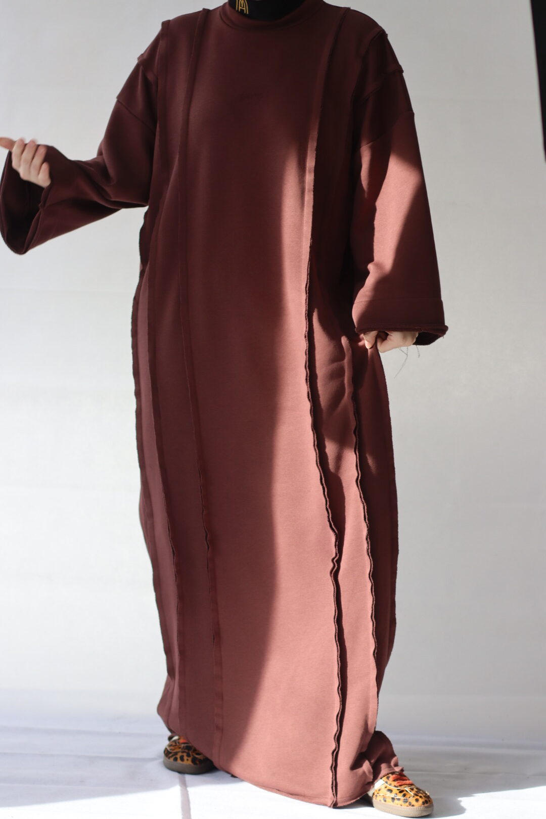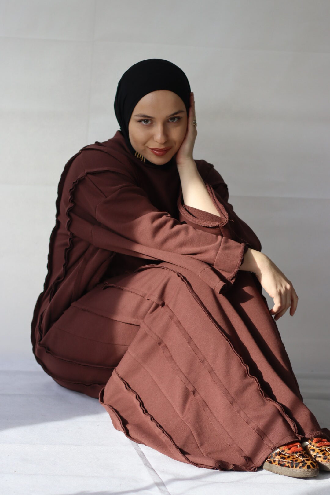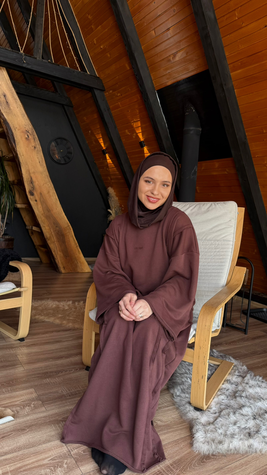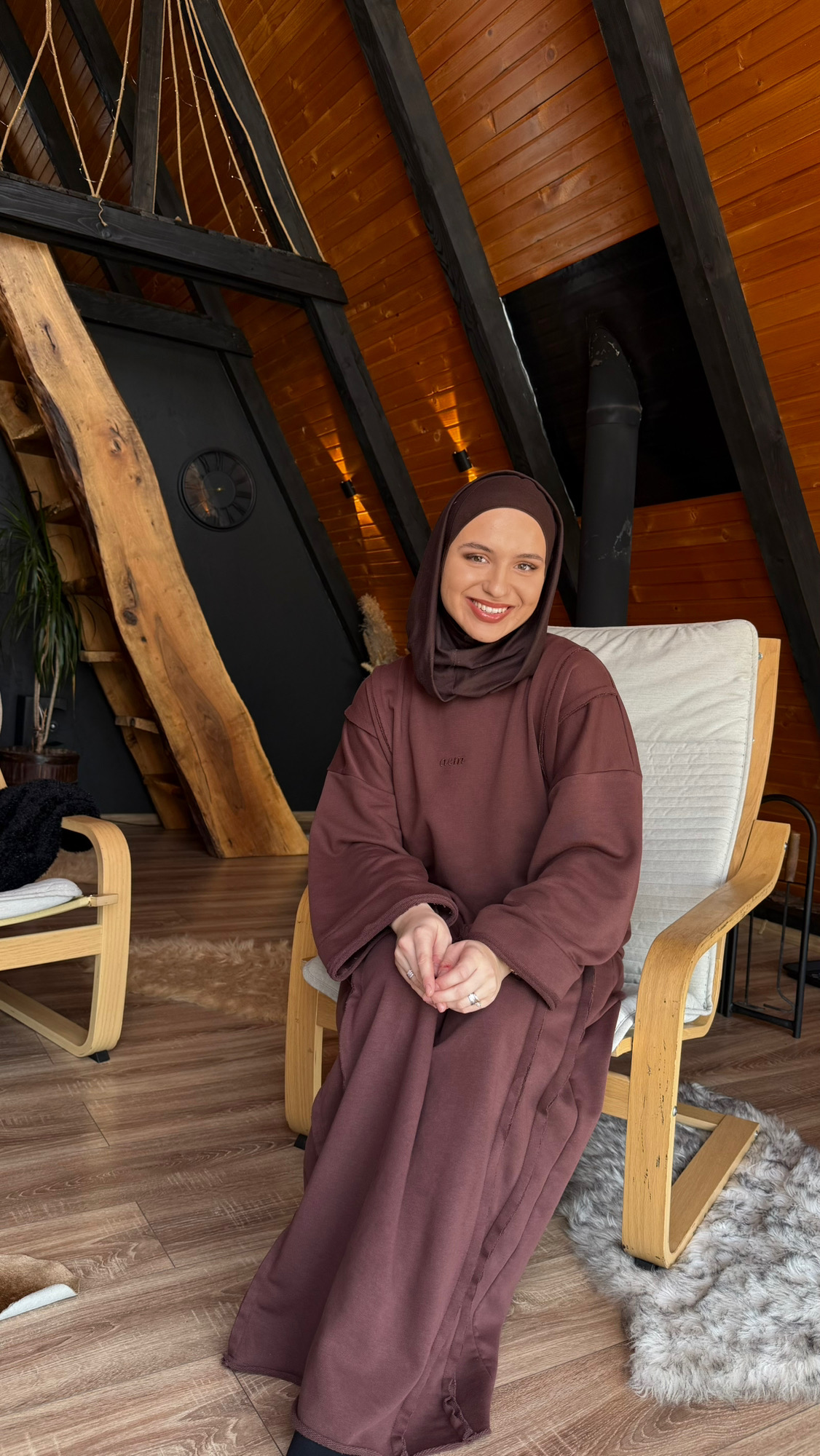 Haljina je krojem prilagođena pokrivenim ženama – duža, komotna i nenametljiva, pogodna za svakodnevne obaveze, šetnje ili ležerne prilike. Sportsko-elegantan stil omogućava lako kombinovanje sa patikama, čizmama ili kaputom.